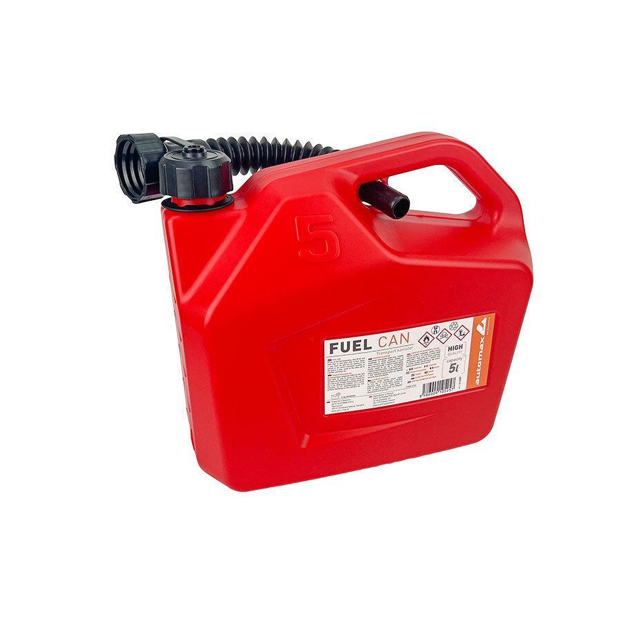 Plastový kanister s objemom 5l je určený pre uchovávanie alebo prepravu všetkých pohonných hmôt pre dvoj a štvortaktné motory. Súčasťou dodávky je praktické nalievacie hrdlo. Kanister je na jednej strane vybavený priesvitnou ciachou, pre lepší odhad zvyšného množstva paliva v kanistri. Plastový kanister na prenos paliva Objem: 5l Plastový uzáver s tesnením + plastová trubica pre jednoduchšie nalievanie do nádrže Farba: červená